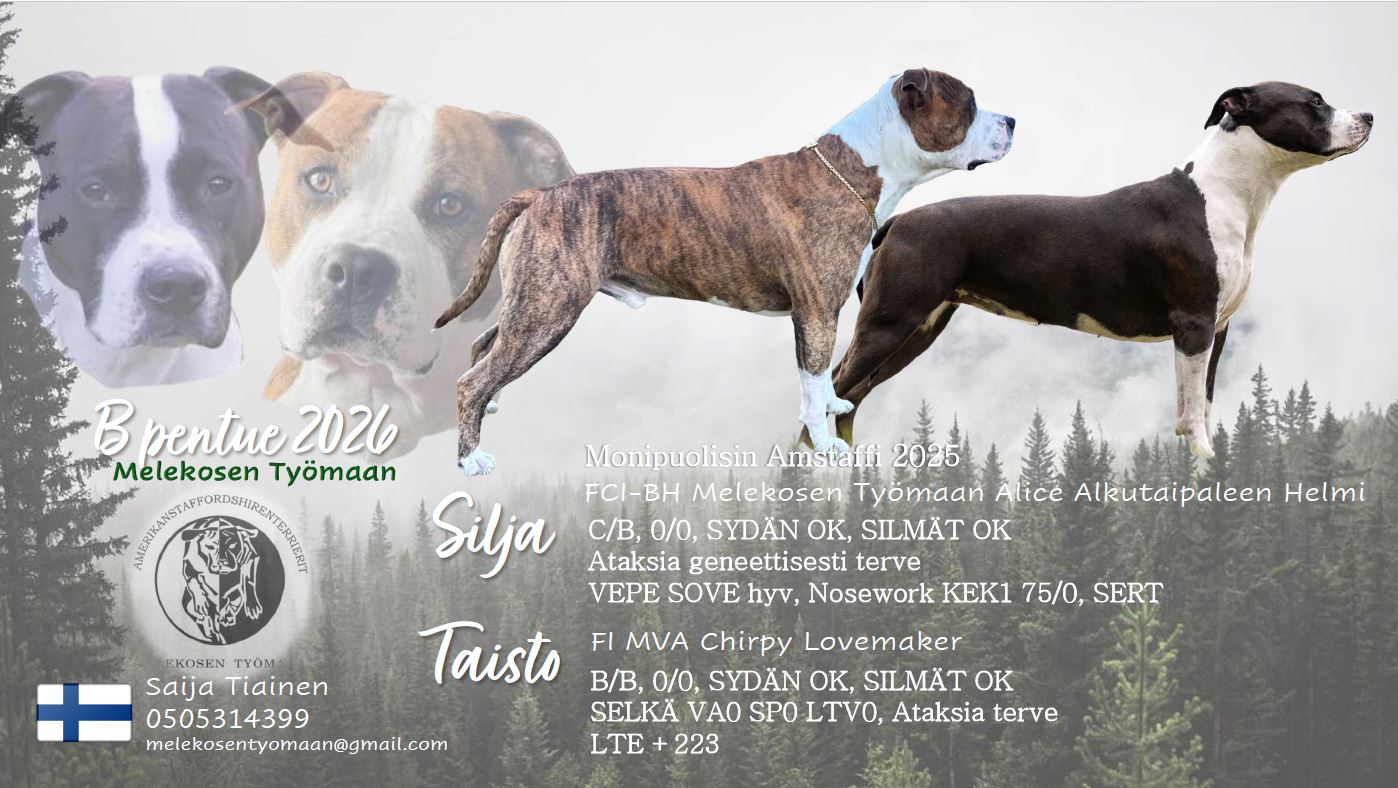 käytännön mukaan. Lisäksi kaikki pennut pentutestataan, mikä auttaa